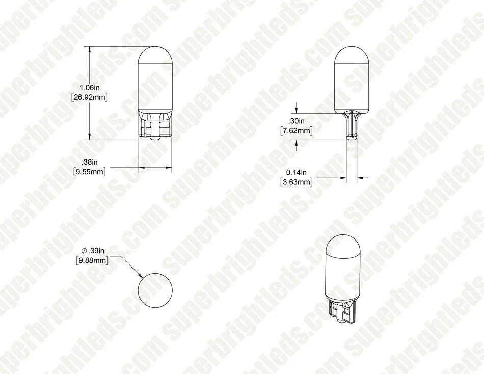 194 LED Bulb has the same shape and size of old technology, but has the improved design of LED COB light. Retrofit this miniature wedge base wherever standard 194 bulbs are. Use for courtesy, dome, or map light. Install in the glove box, trunk, inside door, and more. A convenient replacement, the glass bulb T3.25 shape is built exactly like the previous incandescents, protecting the internal components, and allowing a 360° angle of all-around light.