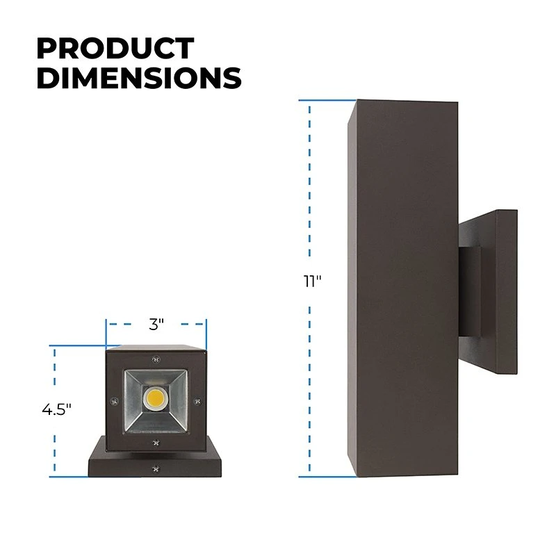 • Enhance your outdoor ambiance with the 11″ Bronze Square Cylinder LED Wall Sconce. This modern wall light features a sleek bronze finish and a square cylinder design, perfect for contemporary or traditional spaces.