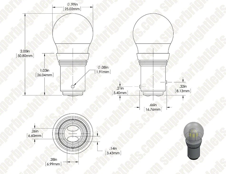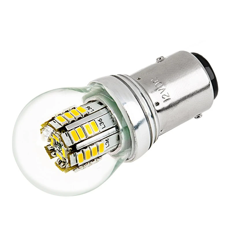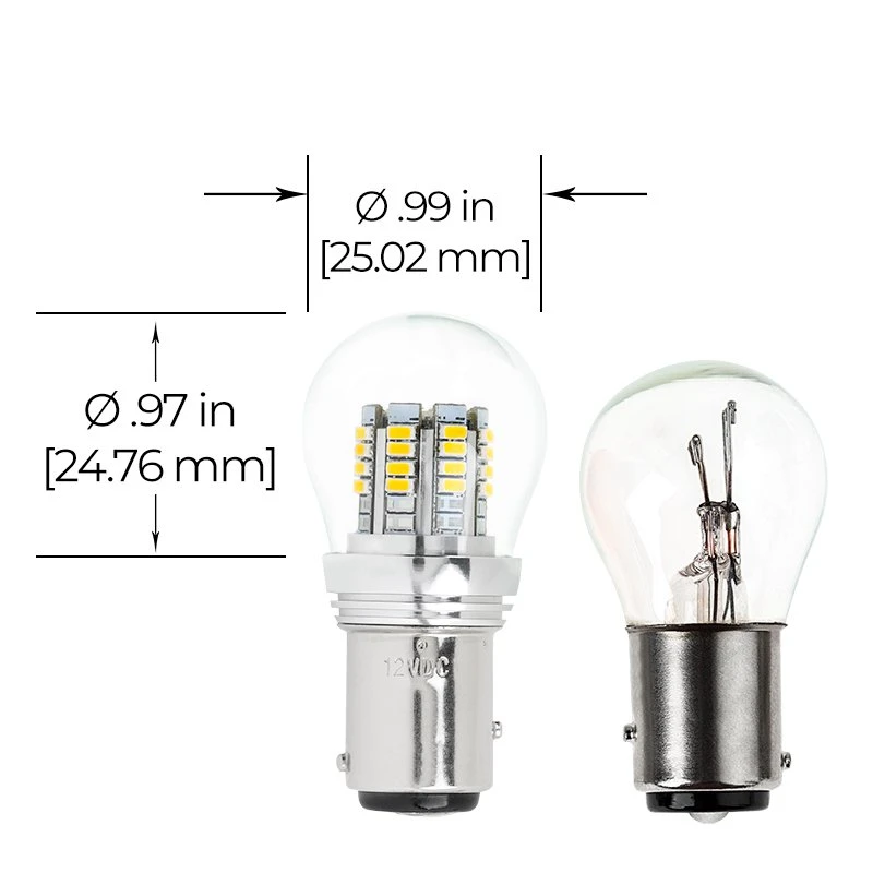 The BAY15D plug-and-play LED replacement bulb is suitable for vehicle applications. The 360° beam angle reduces hot spots and provides a wide viewing angle for all-over light emission. The stock bulb cover encloses the LEDs and gives the bulb a traditional look. Designed to last 30,000 hours- 25 times longer than incandescent bulbs- they are ideal for tail lights, brake lights, and turn signals.