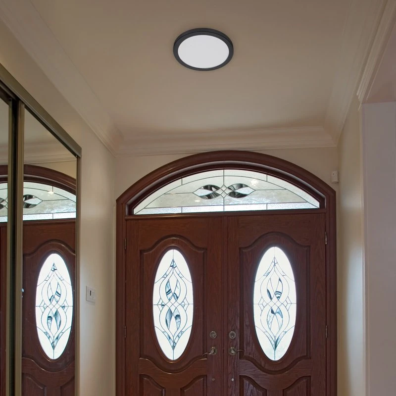 • Modern Design: This 12″ LED Slim Flush Mount Ceiling Light features a sleek matte black trim ring, blending seamlessly with any contemporary or traditional decor.