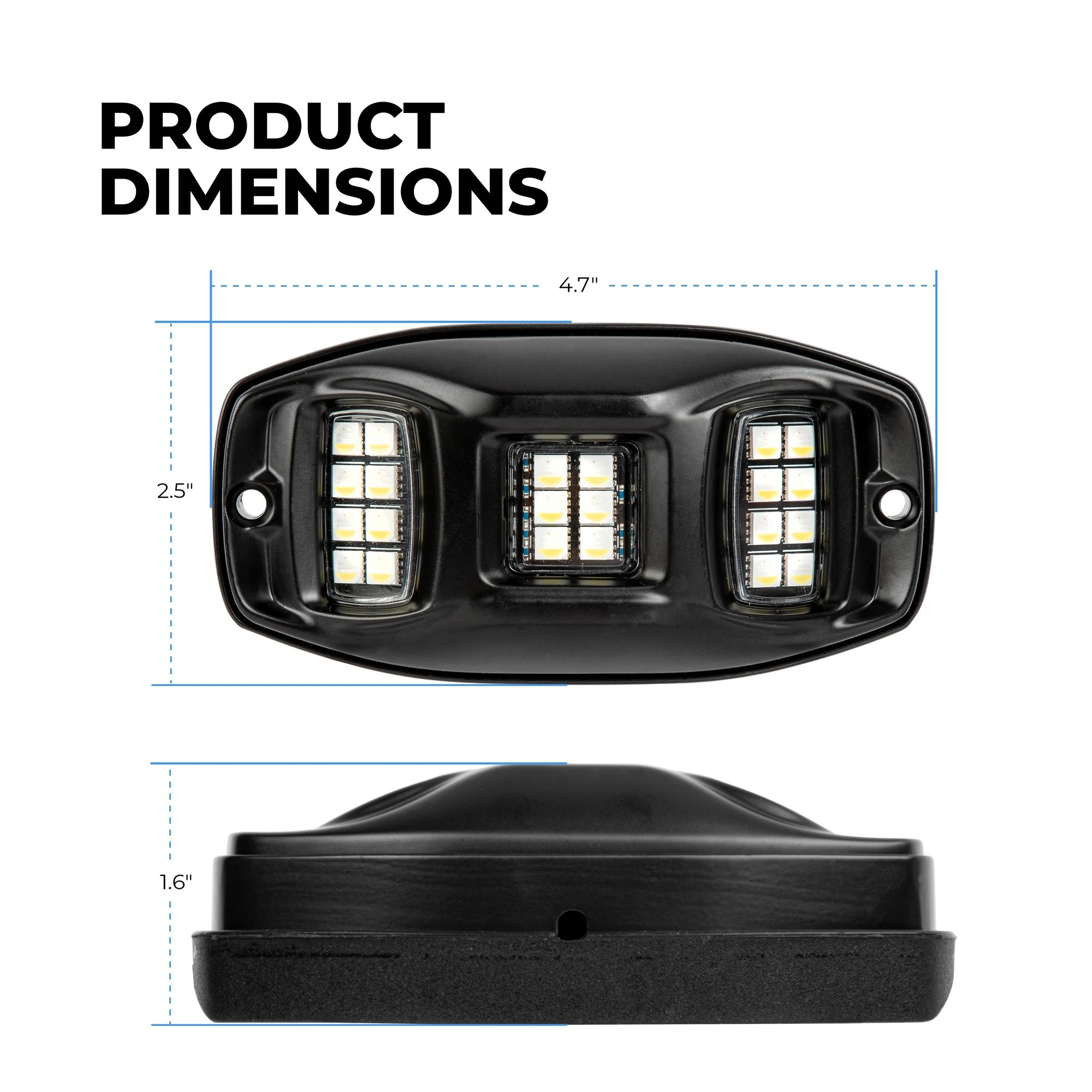 • Enhance your vehicle’s style and visibility with the 12 Pod Off-Road RGBW LED Rock Light Kit. This kit includes 12 high-quality LED pods that provide vibrant RGBW lighting, perfect for off-road adventures or custom vehicle accents.