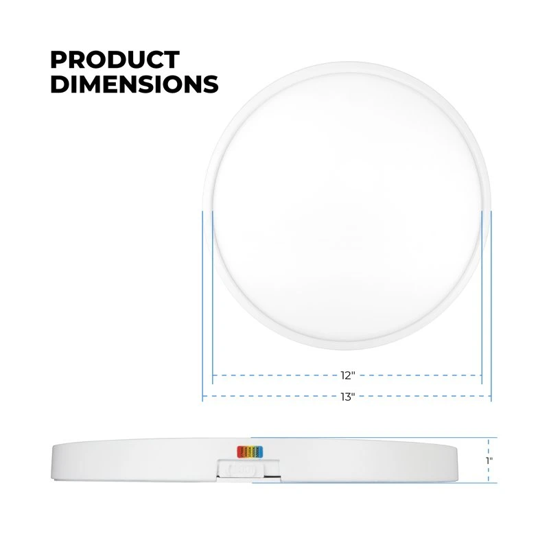 The 13-inch LED downlight features five field-selectable color temperatures. During installation, select the color temperature that best matches the application by using the slide switch on the side of the downlight. The frosted polycarbonate lens diffuses light and creates uniform light distribution. The slim, low-profile downlight flush mounts to a junction box using the included bracket. Use the attached safety cable to simplify installation and increase safety. Install in new construction, retrofits, and remodels. Perfect for bathroom, kitchen, and office lighting.