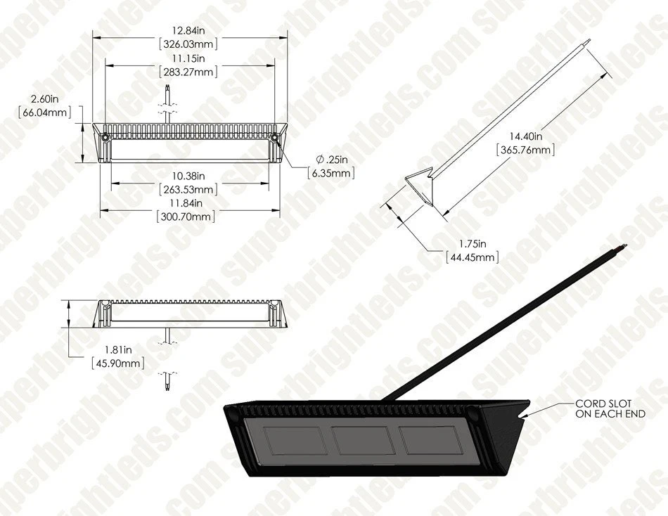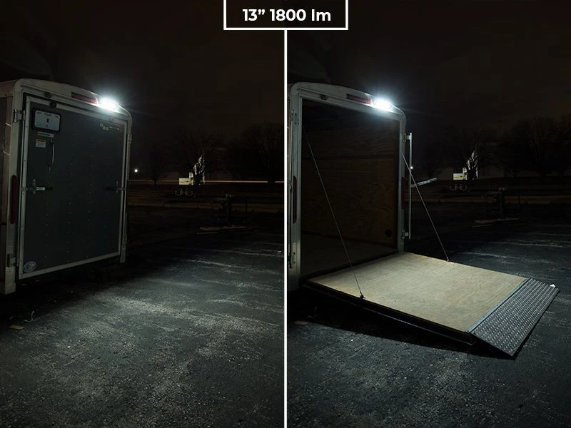 13” RV / Trailer LED light provides low-profile lighting ideal for RVs, trailers, towing, scene lighting, porches, and more. The sealed aluminum housing and shatter-resistant polycarbonate lens protects from harsh weather conditions and corrosion. Emits a wide 90° beam angle with 2,000 lumens of natural or cool white light. Mounting and installation hardware included.