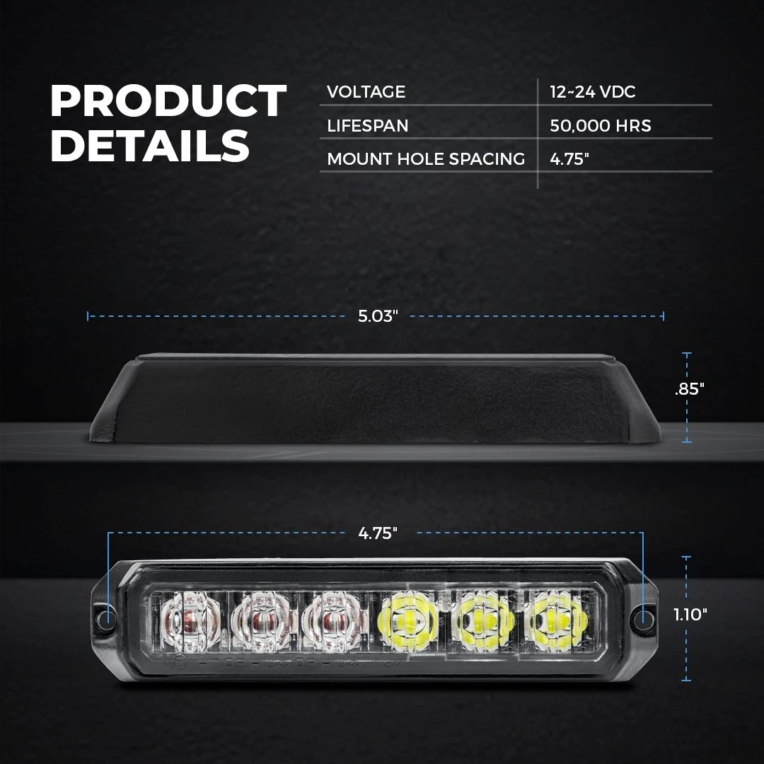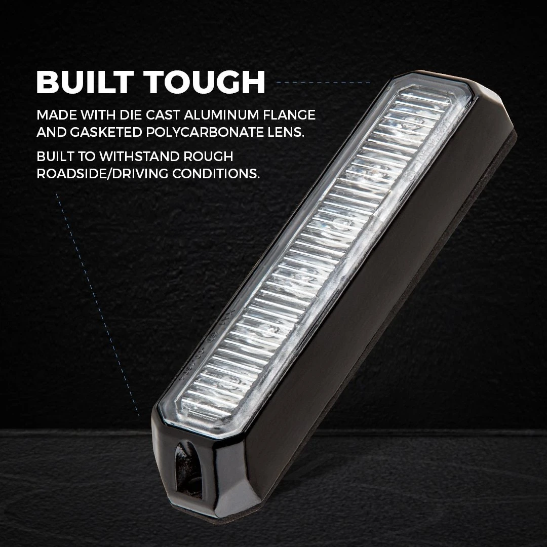 At 5″ long, P-STRB series LED Strobe Light Head has an ultra-low profile to fit a wide range of vehicle applications. Directional LED optics and multiple flash patterns ensure high visibility on the road, even in rough weather conditions. Ideal for emergency, service, or industrial work vehicles, synchronize multiple warning lights together for simultaneous or alternating strobe patterns. High quality materials include a die cast aluminum flange and gasketed polycarbonate lens that resist moisture and vibration. Surface mount to nearly any desired location on a vehicle with included screws, or with optional L-angle bracket.