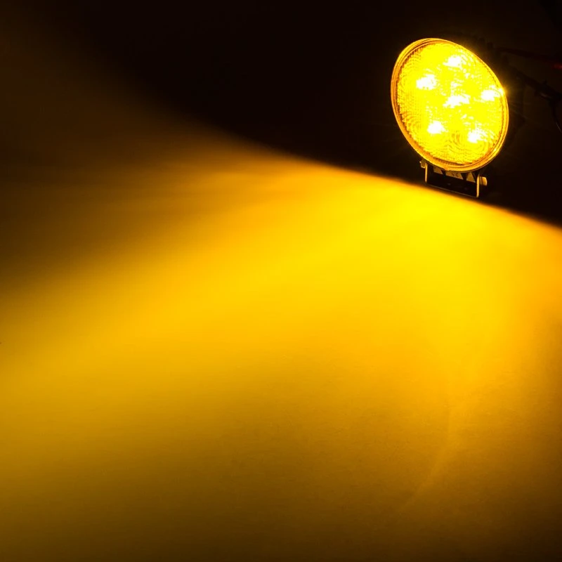 - High-performance 18W Round Amber LED Strobe Light designed for vehicle safety and visibility. Ideal for emergency, construction, and utility vehicles.
