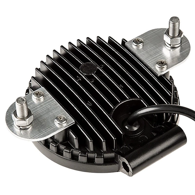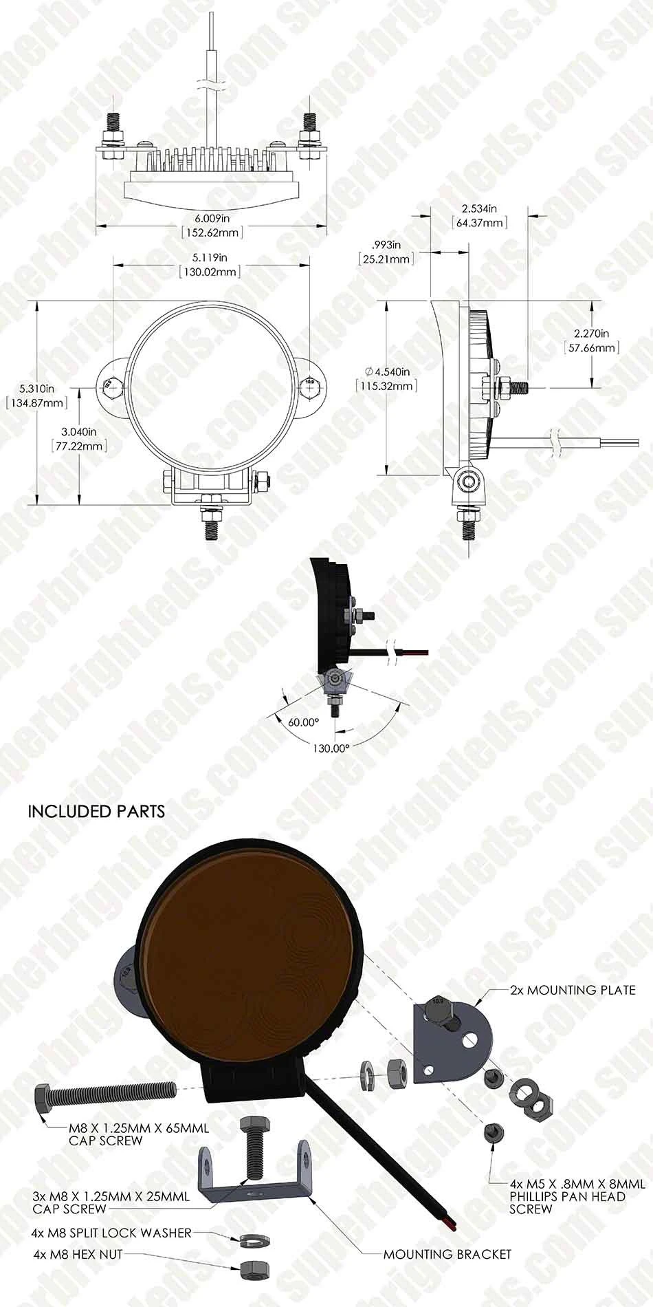 Lifetime warranty on all emergency vehicle and strobe LED lights. 4.5 inch Round High Powered Quad Flash LED Vehicle Strobe light. 6 x 3 Watt high power Amber LEDs. 12~24VDC operating voltage range, IP67 waterproof light. Black painted aluminum housing with integral heatsink and acrylic lens. Produces medium flood 60 degree beam pattern. Stainless steel adjustable stud mounting bracket and optional mounting tabs included. Dimensions: 11.5cm(4.53″) x 4cm(1.57″) x 13.59cm(5.35″). Diameter: 11.5cm(4.53″). Price for each.
