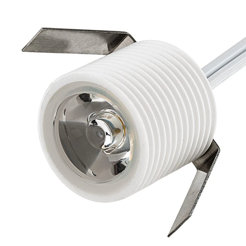 Mini round recessed LED lights are a great way to add accent or safety lighting to steps, stairways, and hallways. This LED step light is also perfect for under-cabinet lighting, indoor accent lighting, closet lighting, bar lighting, and shelf lighting. The LED has an output of 55 lumens and creates a 45-degree beam angle for accent and functional ambient lighting. This low-voltage step light has a 12V AC/DC operation. A weatherproof polycarbonate housing and shatterproof plastic lens seal all internal components. Flush mount in a 1.38″ hole using mounted retaining clips. Select a face plate to match your designs.