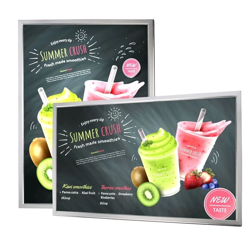 - Customize your light box with high-quality Luxart® printed graphics. The snap-open silver aluminum frame ensures easy graphic replacement, allowing you to update your displays effortlessly.