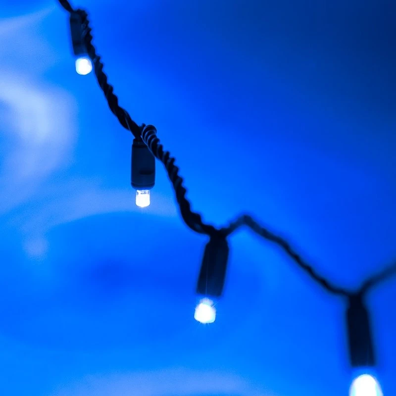 These mini LED Christmas light strands have 50 wide-angle bulbs. Their concave shape allows them to emit an intense omnidirectional beam of light. Connect up to 40 strands together. The 25′ strands (24′ lighted length) have 6″ bulb spacing, green wire, and are individually fused to prevent multiple blown strands in the event of a power overload. Individual bulb failure will not cause others to fail. These LED string lights consume 90% less energy than traditional incandescent strands and last 25 times longer. Each shatterproof bulb is made into the strand (not removable), which eliminates the chance of corrosion. Use these string lights indoors or out for anything from Christmas, Halloween, and Valentine’s Day to party and patio lighting. Strands are available in blue, red, green, warm white, and pure white colors.