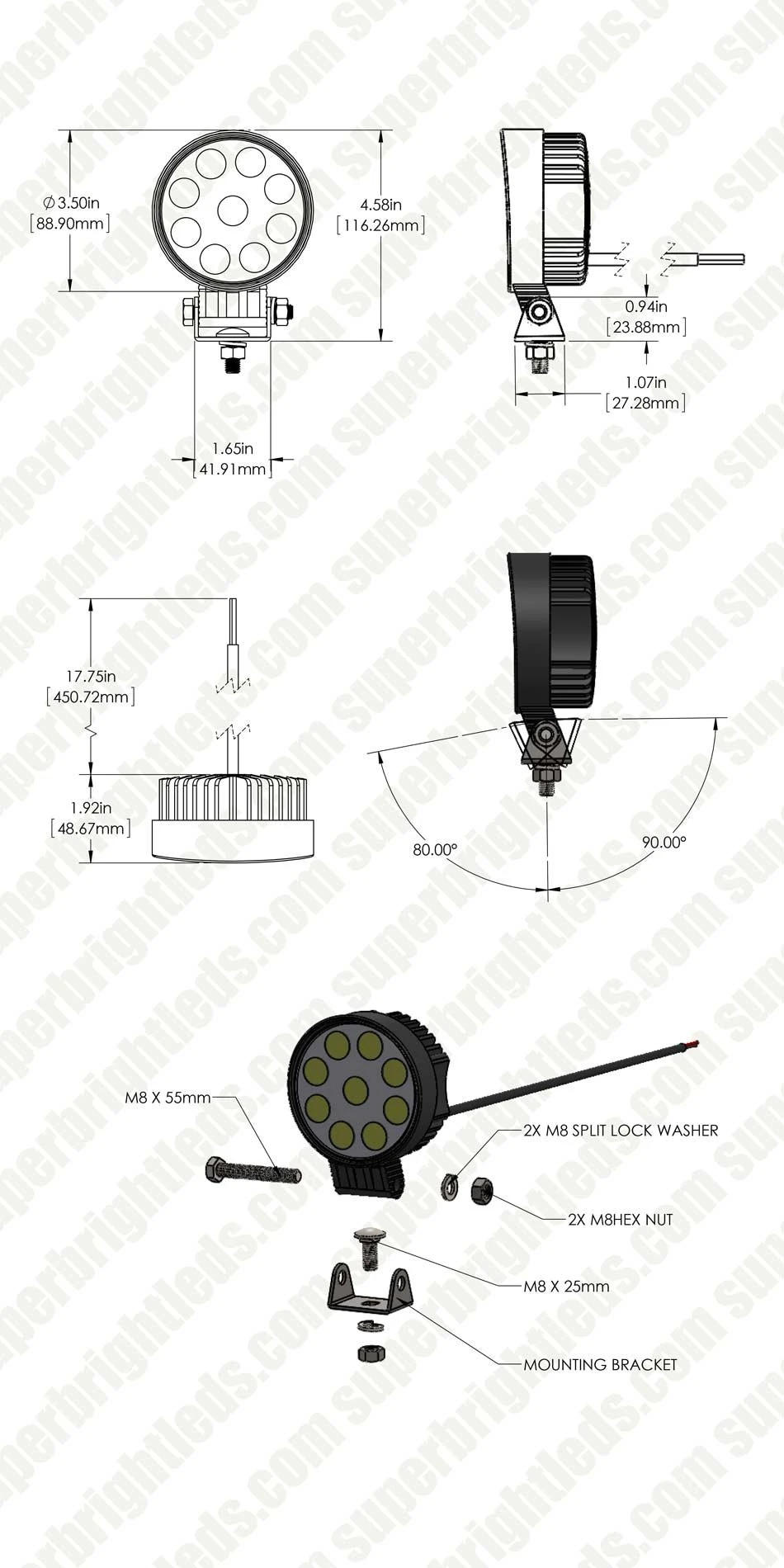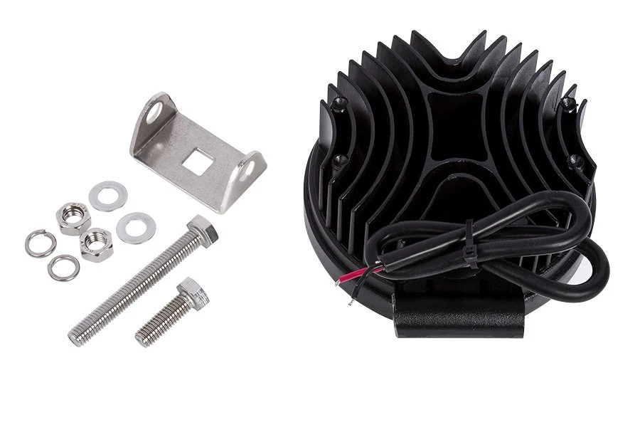 The UTE Series 3.5-inch LED pod lights feature heavy-duty construction with a classic lens design for uniform light distribution. Each 3.5″ round work light in this 2-pack emits 1,600 lumens of cool white in a focused 30° spot beam pattern. The durable LED pod lights are waterproof and shock resistant, with sealed PMMA lenses to keep the LEDs dry even when completely submerged. Aluminum housings with integral LED-cooling heat sinks protect internal components from overheating. Each work light has an adjustable stainless steel mounting bracket that mounts easily on off-road vehicles, tractors, and boats.