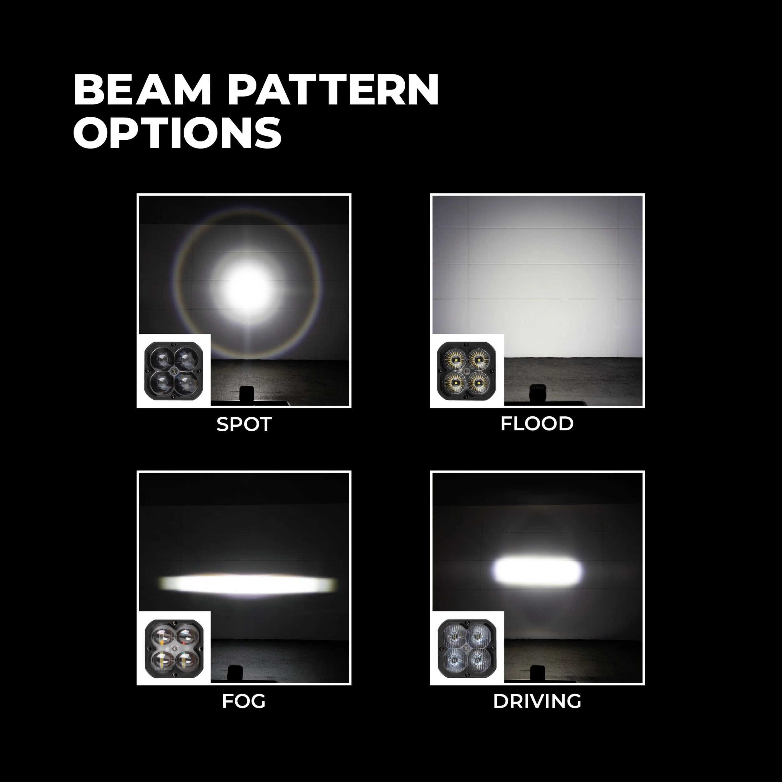 Our 3” SL3 and SL3 SAE Series LED pod lights feature durability and versatility for a range of off-road lighting applications as well as some DOT-Compliant lights. Built to withstand rugged outdoor conditions, the pod lights are IP67 waterproof rated with an aluminum housing and a polycarbonate lens. Advanced TIR optics maximize the LED’s illumination, creating a smooth and uniform light beam. The SL3 SAE Series driving beam and fog beam patters are DOT-compliant. The 8º x 24º driving beam pattern is ideal for long-range lighting with wide area coverage. while the 6º x 36º fog beam pattern works for close-range front and side area coverage. The SL3 Series features heavy-duty construction with a contemporary design. The focused 10º spot beam pattern is ideal for long-range lighting and the wide 65º flood beam pattern supplies full-area coverage for wide visibility. LED pod lights come with an optional black opaque plastic cover that protects the light pod when not in use. Ideal for states in the US that require lens covers on vehicle accessory lights.
