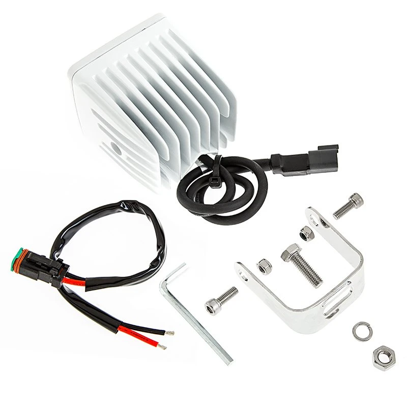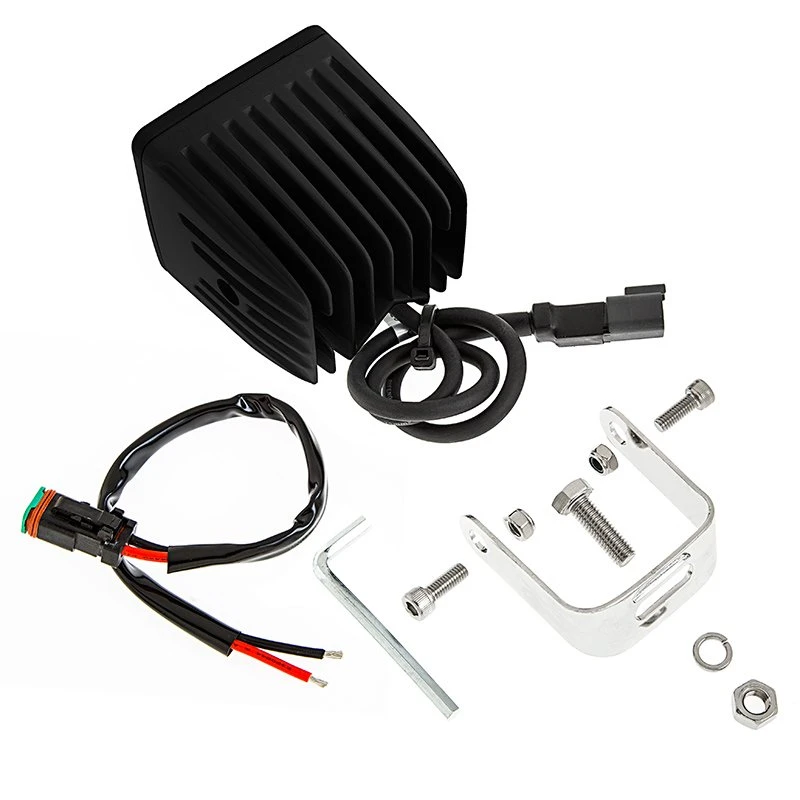 The CL3 Series boasts a classic pod light design with durable construction for a wide range of applications. It is available with a 90° flood beam pattern for area lighting, this 3” Square LED Work Light pod is ideal for off-road vehicles, boats, and tractors. The work light produces 1,400 raw lumens of cool white light from the six powerful LEDs. The aluminum housing is built with an integral heat sink that protects the internal components. Includes an adjustable stainless steel mounting bracket.