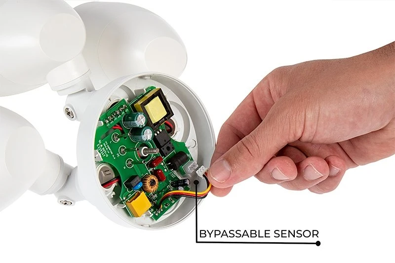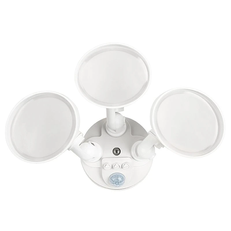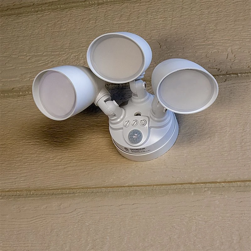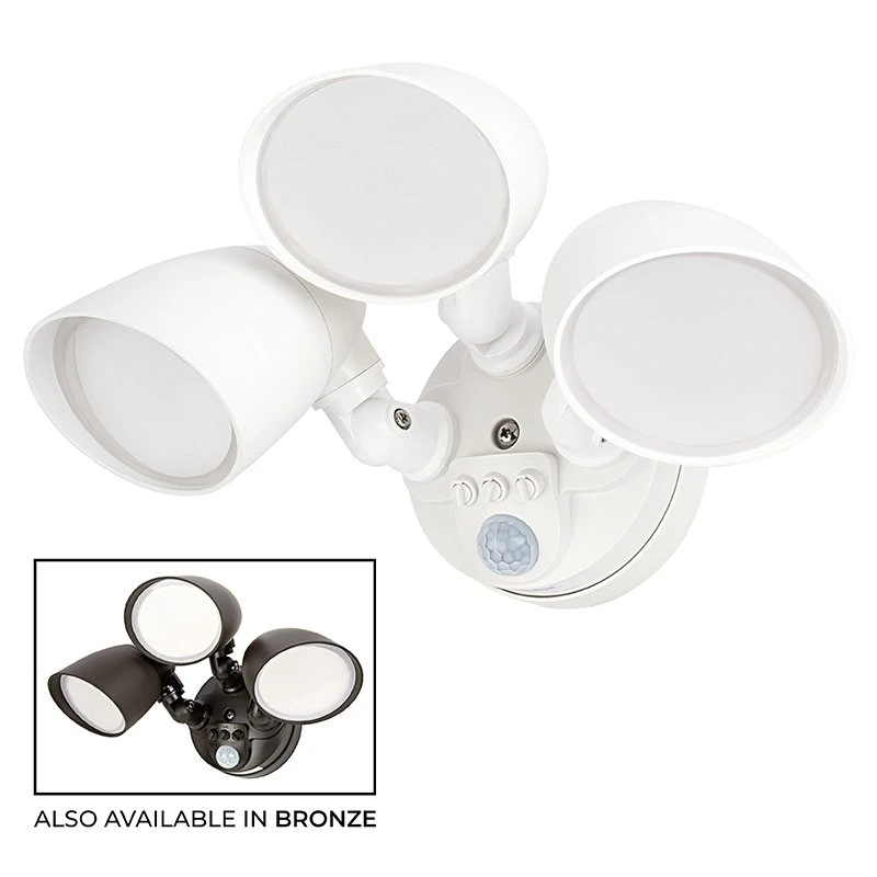 With many adjustable features, the MASL series Motion Sensor Light provides versatile illumination for residential exteriors and perimeter protection. The sensor turns the light on when motion is detected within a wide 120-degree angle, between 3 and 30 feet. Time setting adjusts ON time up to 10 minutes. The Lux setting turns the fixture on when the ambient light reaches the desired level. Or, bypass the sensor during installation for normal on/off flood light operation from a wall switch. Sealed against moisture, dirt, and insects, integrated LEDs withstand outdoor elements while requiring less energy and maintenance than equivalent PAR lamps. Wall or eave mount the lightweight fixture and rotate the three heads for desired light coverage on driveways, yards, patios, and more.