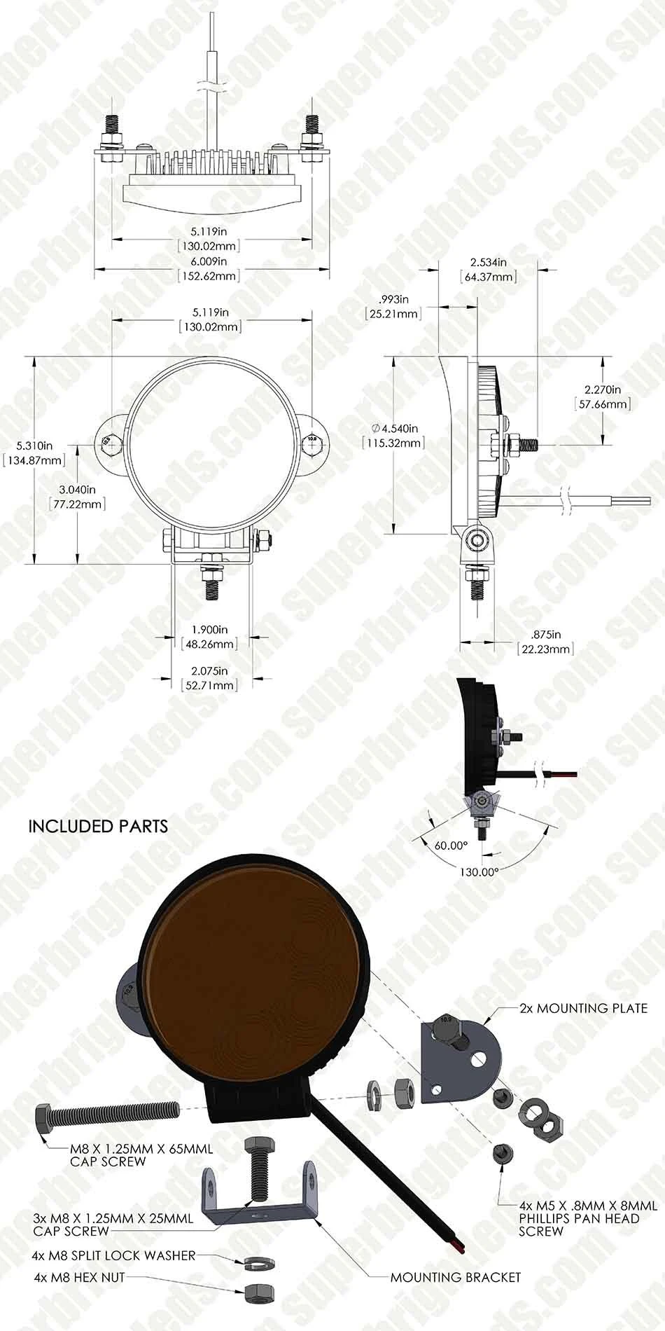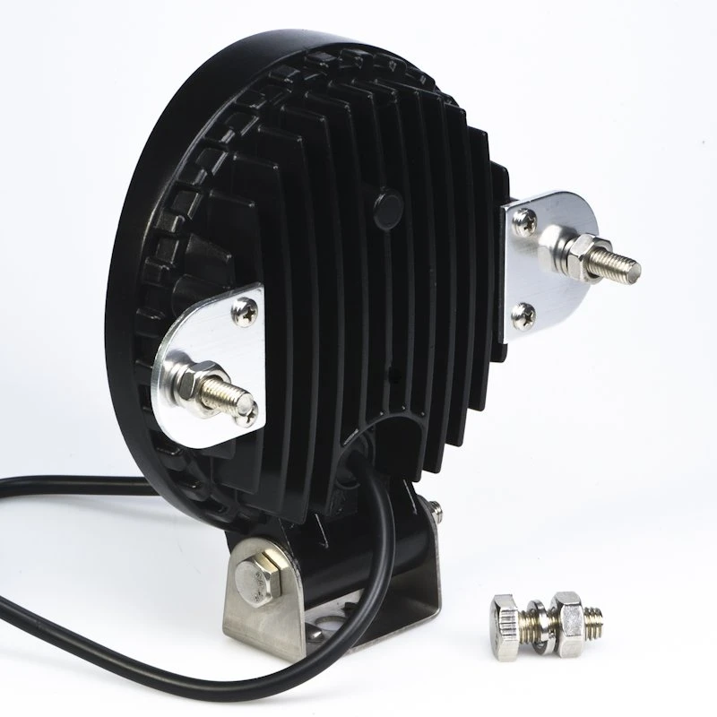 The UTE Series LED Pod Lights feature heavy-duty construction with a classic lens design for uniform light distribution. Choose from either the 30° spot or 60° flood beam pattern for this off-road work light for use with industrial, agricultural, and marine vehicles. The 4-1/2″ round work light emits 1,800 raw lumens of cool white light. Built from durable aluminum with an acrylic lens to protect internal components from extreme weather and vibration. The integral heat sinks keep the LEDs running cool in hot conditions. Includes an adjustable stainless steel mounting bracket as well as optional side-mounting tabs.