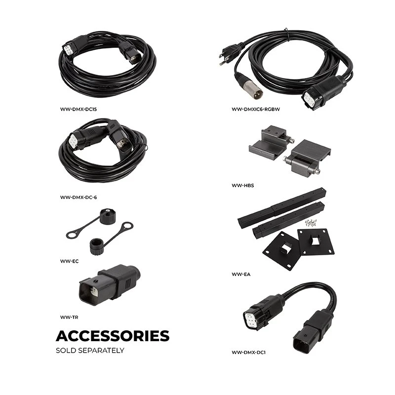 Illuminate interior and exterior walls and surfaces using the RGBW linear LED wall washer. The wall washer is constructed for exterior applications, featuring a corrosion-resistant aluminum housing, a non-yellowing tempered glass lens, and a waterproof IP66 rating. A 30° x 85° beam angle produces a focused light beam ideal for accenting walls and displays. Use a DMX controller to mix full RGB color, producing up to 16 million colors, or select a warm white 3000K color temperature. Link up to 20 lights together using 1′, 6′, or 15′ interconnects. Shop an array of optional DMX accessories and mounting accessories here.