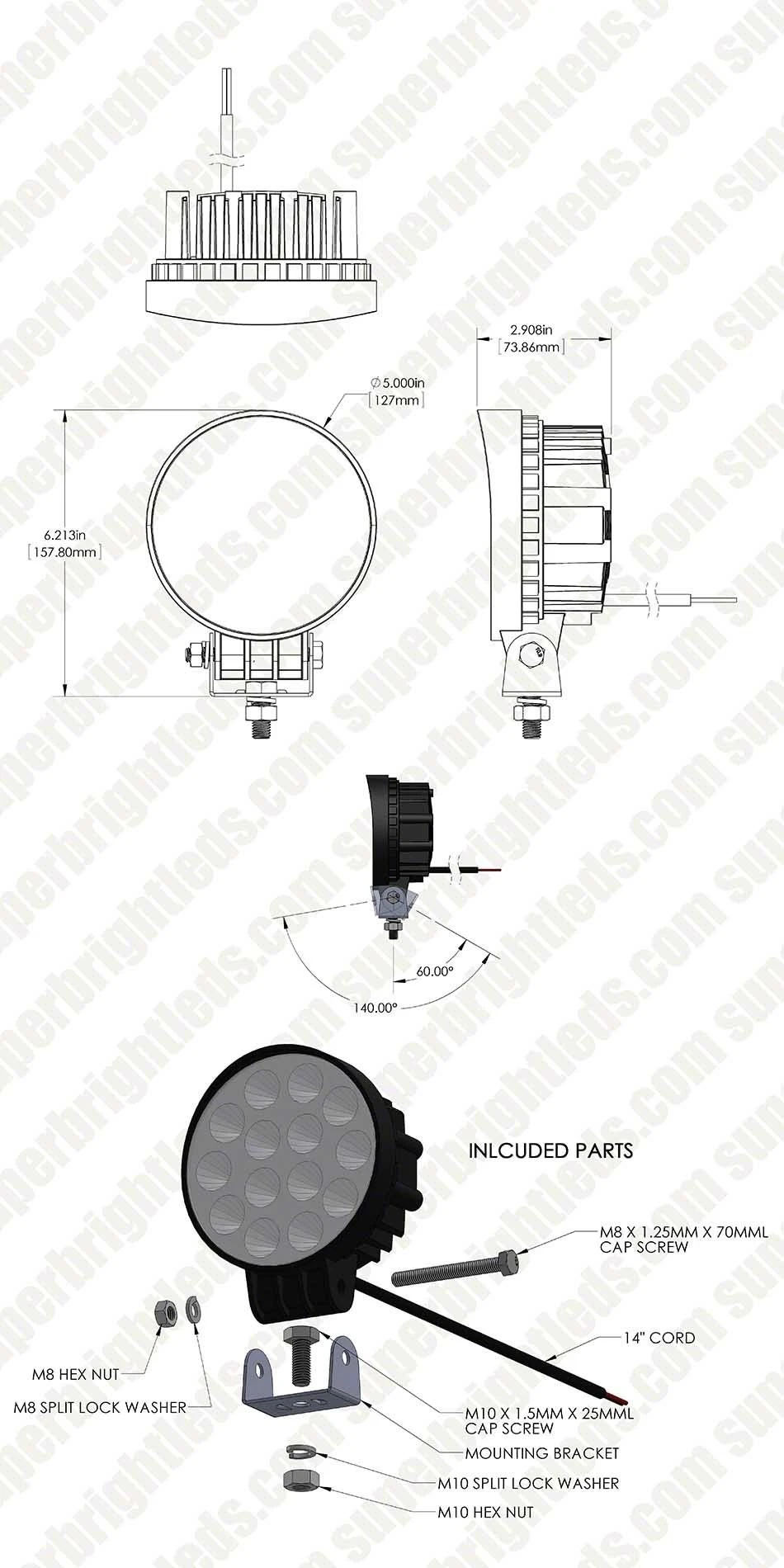 The UTE Series LED Pod Lights feature heavy-duty construction with a classic lens design for uniform light distribution. Control this off-road LED work light with the integral on/off switch. Available with a 60° flood beam pattern this light is great for use with trucks, ATV’s, and marine vehicles. The 14 powerful LEDs emit 2,000 raw lumens of cool white light. An aluminum housing and polycarbonate lens protect internal components, while integral heat sinks allows LEDs to run cool. Includes an adjustable stainless steel mounting bracket.
