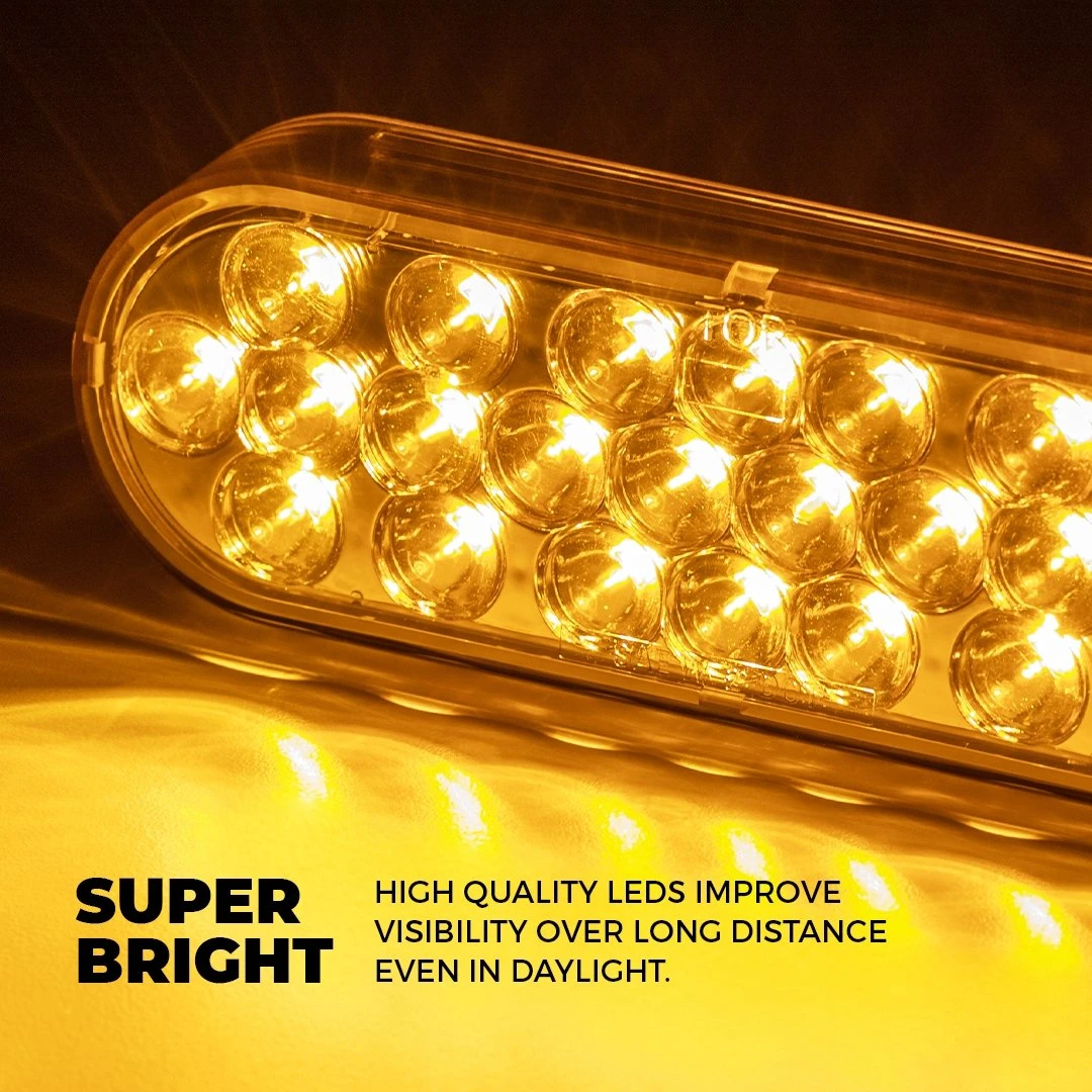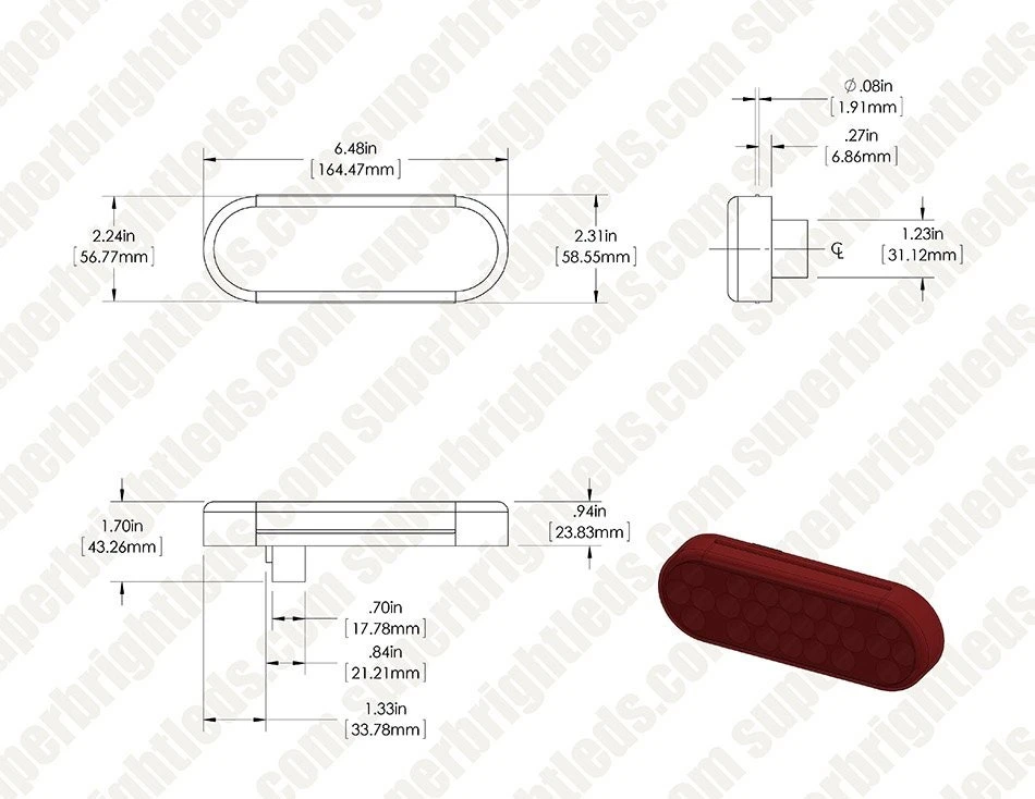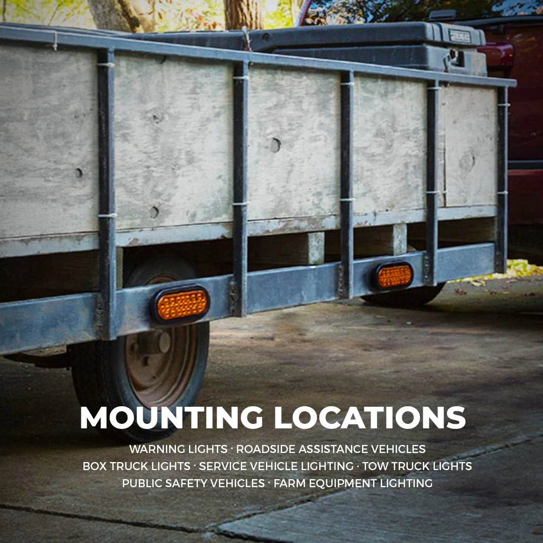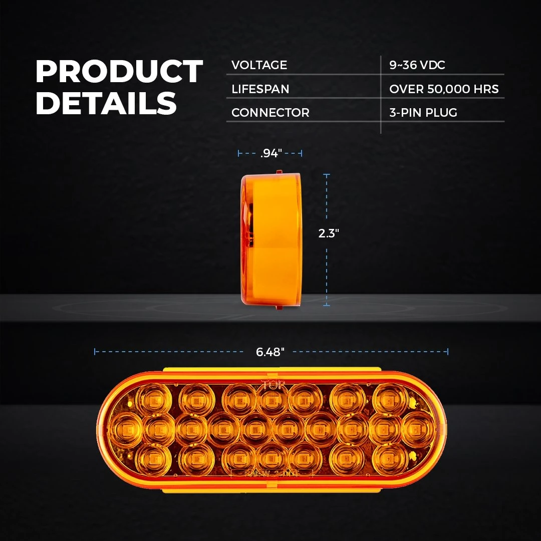 With 24 bright LEDs the PT-STRB series Oval LED Strobe Lights provide excellent safety alerting. Available in both red and amber these lights come with industry-standard 3-pin plug connectors. Sonically sealed polycarbonate lens and weatherproof housing provide protection against impact and weather. Surface mount with compatible mounting hardware, sold seperately. Meets DOT FMVSS 108 requirements for use as directional warning lights and hazard lights for trucks and trailers.