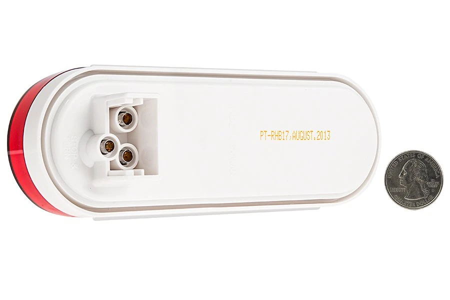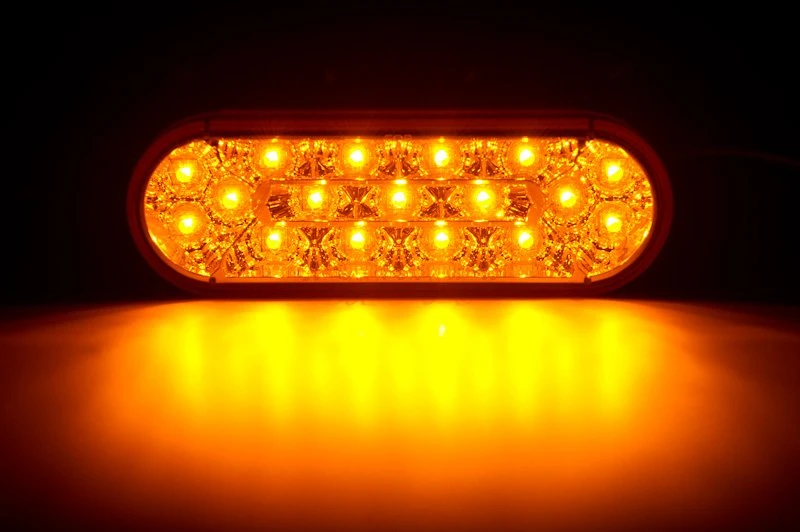 Designed to accept industry-standard 3-pin plugs, this 6” oval LED light meets DOT FMVSS 108 requirements for use as brake lights, turn signal lights, hazard lights, parking lights, and tail lights. Mounts flush with a compatible grommet, bezel, or flange. Each light boasts 17 high-flux LEDs that operate within a wide 9-14.8V DC range and consumes 90% less energy than incandescent lamps. Sonically sealed polycarbonate lens and weatherproof housing. The truck/trailer lights are available in amber or red. Lifetime warranty on all truck/trailer lights. See the similar clear lens version.