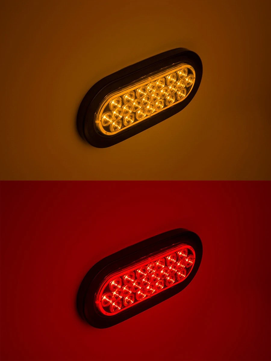 6” oval LED truck and trailer lights are designed with industry standard 3-pin connector plugs and ideal for use as a parking, back-up, reverse, turn signal, hazard, brake, and tail lights. Constructed with sealed weatherproof housing and a polycarbonate lens for extreme weather conditions. Mounts easily with a grommet or mounting bracket (sold separately). Available in red or amber light and backed by a lifetime warranty.