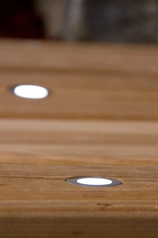 Mini round recessed LED lights are a great way to add safety lighting to steps, stairways, and hallways. This LED step light is also perfect for under-cabinet lighting, indoor accent lighting, closet lighting, bar lighting, and shelf lighting. The six LEDs have an output of 25 lumens and create a 90-degree beam for accent and functional ambient lighting. This low-voltage step light has a 12V AC/DC operation. A weatherproof polycarbonate housing and frosted polycarbonate lens seal all internal components while delivering soft, even light. Flush mount in a 1.38″ hole using mounted retaining clips. Select a face plate to match your designs.