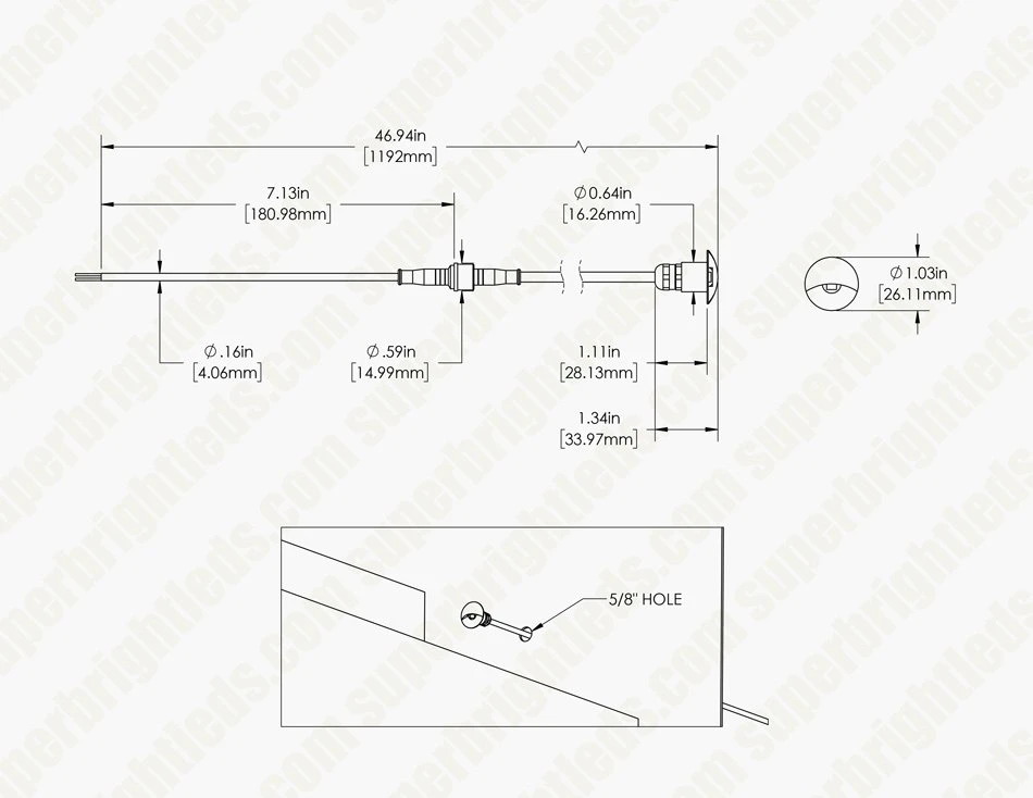 - Installs in a 5/8″ round hole