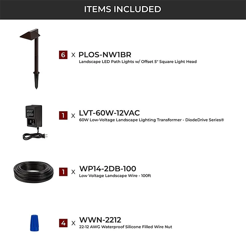 - Upgrade your outdoor lighting with this 6-pack LED Landscape Lighting Kit. Featuring sleek offset square head path lights, this kit provides modern, energy-efficient illumination for walkways, gardens, and more.