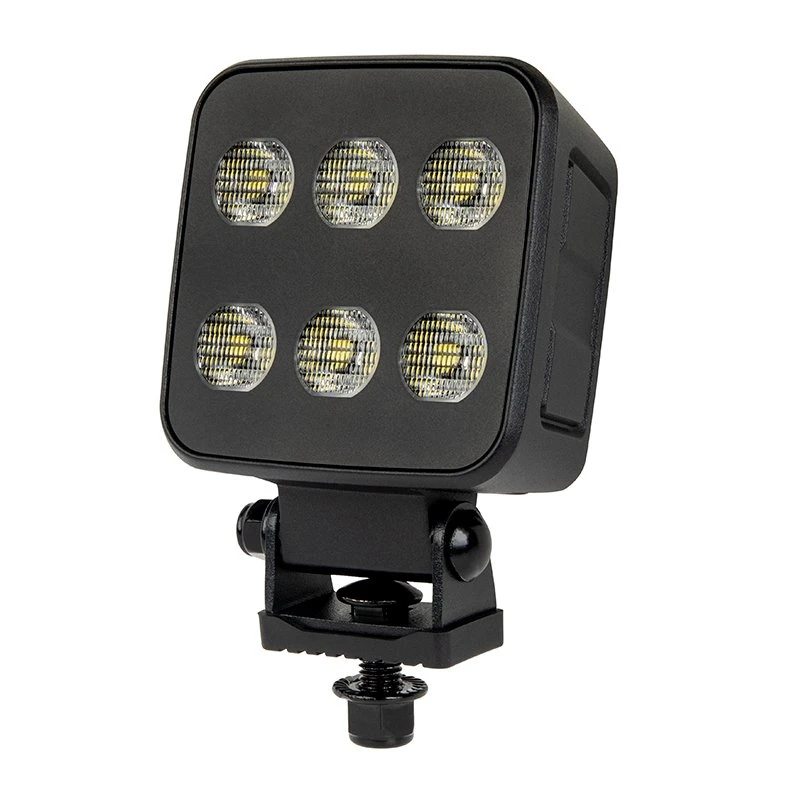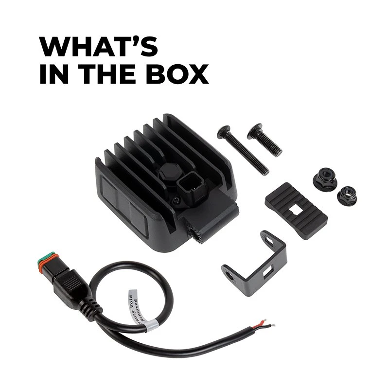 The 3.5” vibration-resistant LED work light is designed for rugged outdoor applications such as construction equipment, forestry equipment, and agricultural machinery. The light is designed with a rubber piece on the bottom of the stainless steel mounting bracket, creating 60G shock resistance and 15G vibration resistance. A 100° flood light distribution provides wide visibility in open work areas. Built with a powder-coated aluminum housing, a stainless steel mounting bracket, and rated IP69K, the work light is durable in the harshest operating conditions. A bezel-less design prevents mud and snow from accumulating on the lens. Easily power using the built-in DT connector on the back of the light.