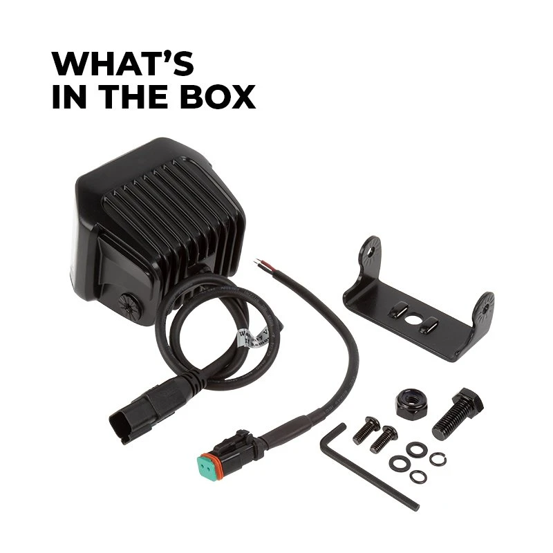 Our HS3 Series features 3″ side shooter lights with an ultra-modern design. The 70W LED side shooter light pods deliver 8,400 lumens with a 20° spot beam pattern that improves long-range lighting or a 110° flood beam pattern that improves near-range visibility. The side shooters increase the total beam angle to 140°. The enhanced thermal management adjusts light output at temperature extremes to lengthen lifetime while providing the maximum illumination possible. A die-cast aluminum housing and polycarbonate lens provide dust, water, and impact resistance. Mount the light pods to a variety of off-road vehicles using the included stainless steel mounting hardware.
