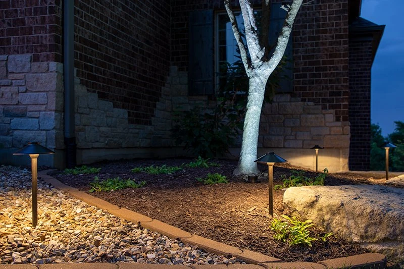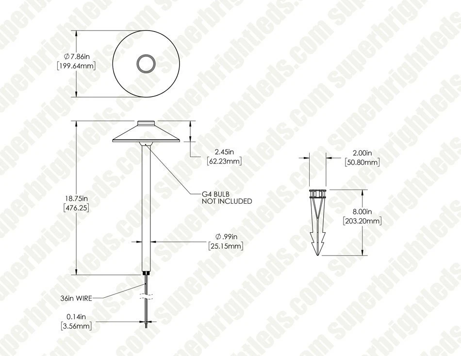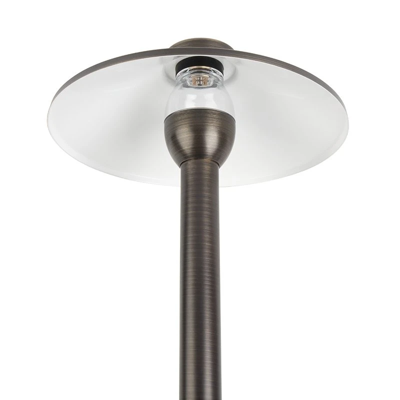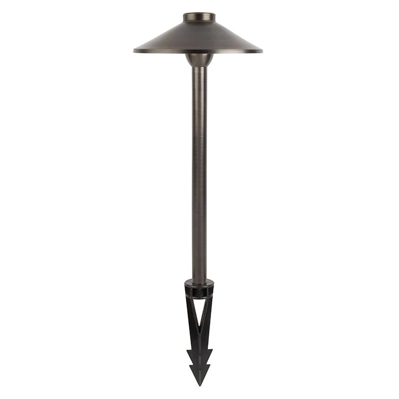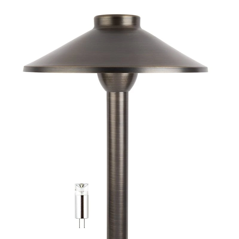 The solid brass landscape path light is a corrosion-resistant LED-ready drop-in fixture with an 8″ cone shade and 15″ stem. Bundles include a plug-and-play G4 bi-pin bulb with a 180° beam angle. The clear bulb enclosure protects the bulb from water and debris. Perfect for landscape lighting, walkway lighting, or garden lighting.