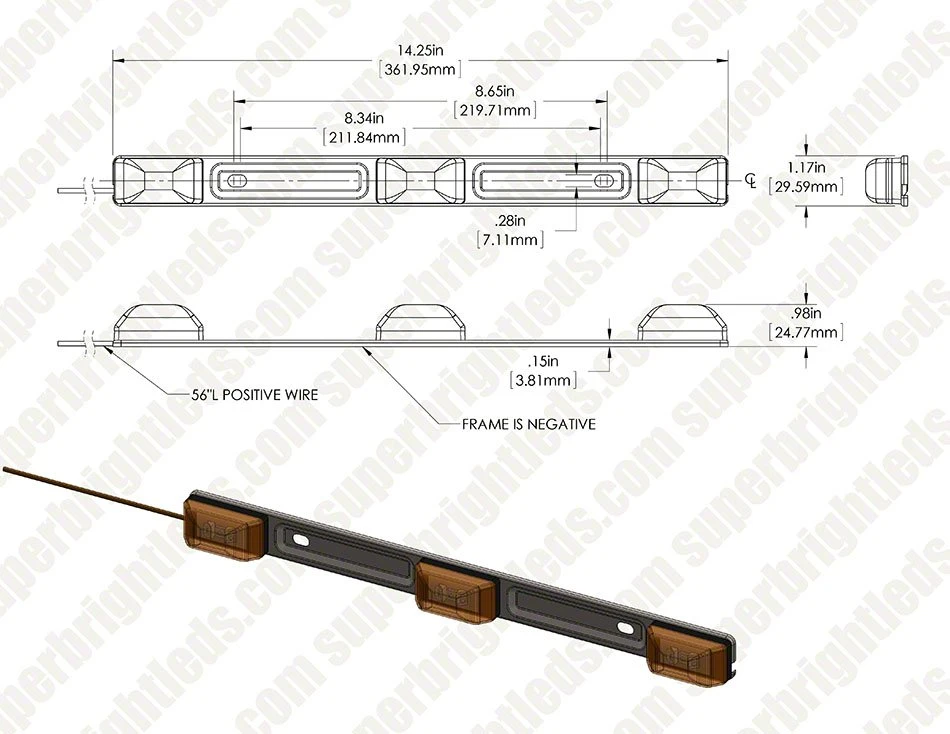 Improve visibility and safety with this SSMBPC series Truck and Trailer LED ID Light. Meets DOT FMVSS 108 requirements for use as an identification light bar. Built with a rugged stainless steel mounting bracket that secures easily to the surface of trailers, RVs, and flatbeds. Sonically sealed polycarbonate lens and weatherproof housing protect internal components. Available in red and amber.