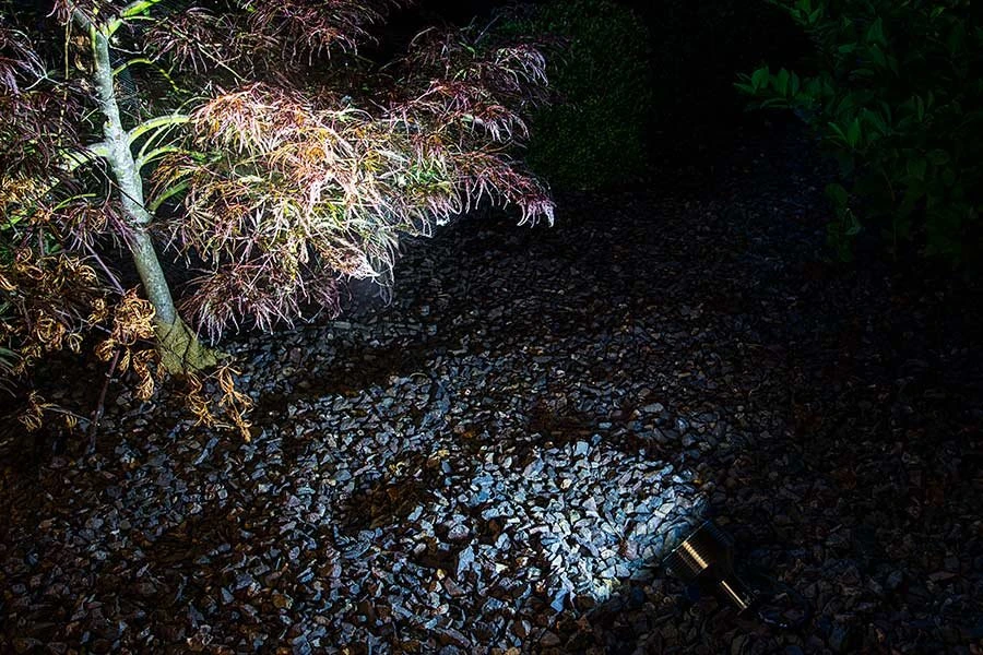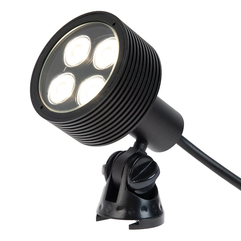 These LED landscape lights are an energy-efficient solution for architectural lighting, garden lighting, outdoor accent lighting, and tree uplighting. They’re also perfect for use as underwater pond lights and fountain lights when used with a weighted base (sold separately). The 8-watt outdoor LED spotlight emits up to 625 lumens and produces a 30° beam of white illumination. An IP68-rated waterproof black powder coated brass housing protects internal components, and an adjustable mounting base allows the fixture to be aimed up or down with in 80° of the mounting surface. The LED spotlight has 12V AC/DC operation and a 4’6″ power cord with a G-LUX plug-and-play connector for easy installation in a G-LUX landscape wiring system. Can also be used in an existing low-voltage landscape wiring system with a G-LUX pigtail power cable and is easily mounted with a ground mounting stake. See all compatible G-LUX series products and accessories.