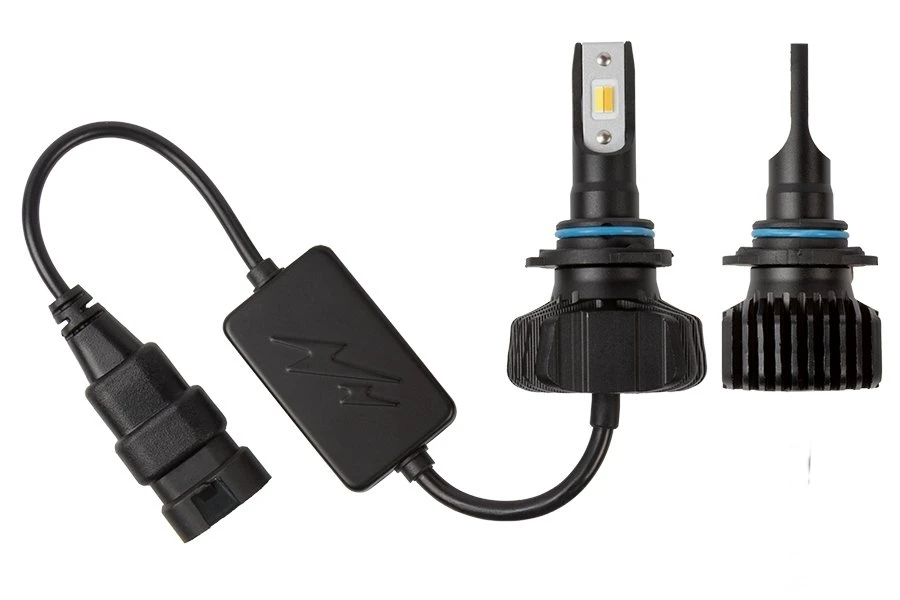 These 9006 dual-color LED headlight/fog light bulbs increase safety and visibility in any weather. Single-beam LED headlight bulbs emit 4,500 lumens of cool white or yellow light per set (2,250 lumens each). Easily switch between colors by powering the lights on/off. These bulbs have integrated or bulky braided heat sinks instead of short-lived fans to increase longevity and make installation easier in tight spaces. These CAN Bus compatible bulbs operate on 9-32 VDC. This long-lasting kit includes 2 9006 LED headlight bulbs.