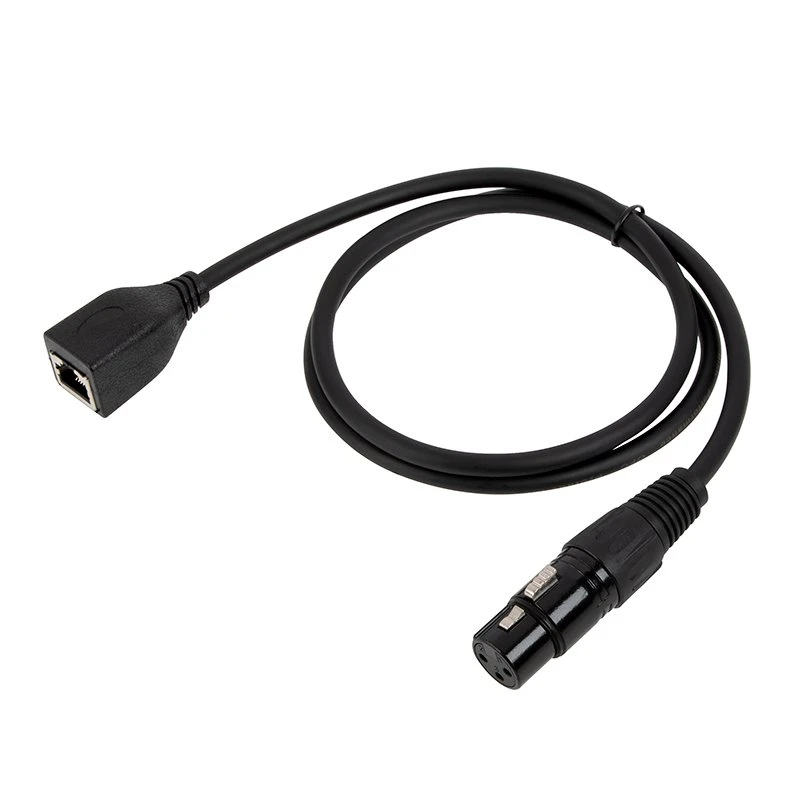 The DMX signal cable is designed to adapt a 3-pin XLR output to an RJ45 input, preventing lossless transmission of signal. The 1m cable is constructed of a shielded copper cable and zinc alloy connectors for secure connectivity and no interference.