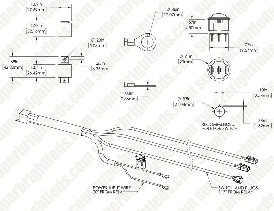 - Equipped with a high-quality DT Connector, this wiring harness offers a secure and easy-to-install solution for your vehicle’s lighting needs. The included switch and relay provide added convenience and control.