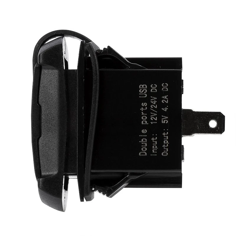 - Dual USB Charging Port Adapter designed for LED rocker switch panels, featuring a built-in voltmeter and ammeter for real-time monitoring of your electrical system.