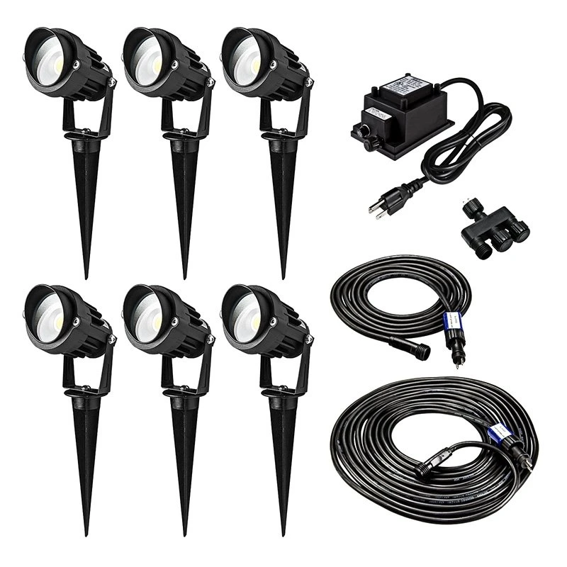 - Transform your outdoor space with the G-LUX Series 6-Spot LED Landscape Lighting Kit. This kit includes 6 high-quality LED spotlights and a low voltage transformer, making it perfect for illuminating gardens, pathways, and driveways.