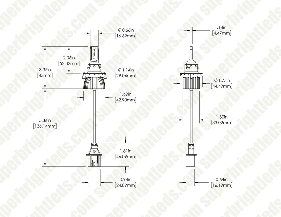 The H13 LED Headlight Conversion Kit is designed to upgrade or replace factory H13 or 9008 halogen combination headlight bulbs. The LED bulbs feature an integrated driver and a compact fanless design for easy installation. Integrated heatsinks in the aluminum housing provide thermal management. At 2,200 lumens per bulb, the conversion kit delivers 4,400 lumens of 6500K light, improving visibility and safety. Please check the bulb base and size to verify compatibility before purchasing.