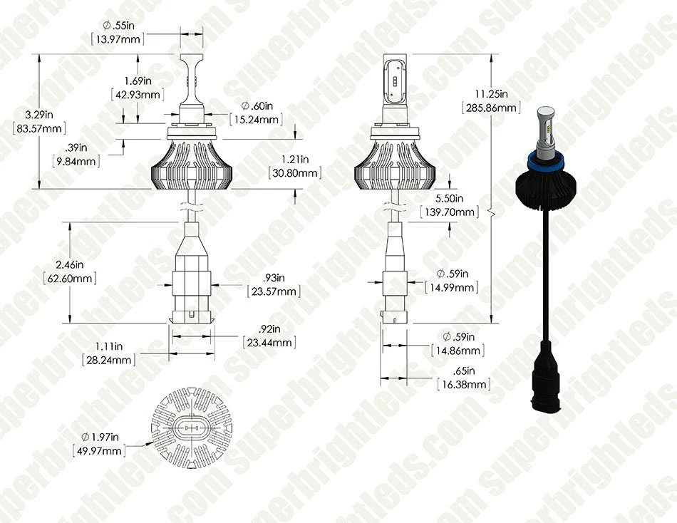 Increase your safety and visibility with this H9/H11 LED headlight/fog light kit. The single-intensity LED headlight bulbs emit 4,000 lumens of cool white illumination per set (2,000 lumens each) and feature 3rd generation cooling technology. They have integrated heat sinks instead of short-lived fans or bulky braided heat sinks. This allows for a longer-lasting bulb and easier installation in tight spaces. They also have internal drivers, which eliminates the need to mount an additional part and locate an appropriate mounting spot. The compact bulbs last 13 times longer than halogen bulbs. LED arrays in each bulb are designed to mimic the filament in halogen bulbs—creating a closely matched beam style. These waterproof, CAN Bus compatible bulbs operate with in a wide 9-32 VDC range. This long-lasting kit includes 2 LED headlight bulbs and 2 H9/H11 plugs. Price per kit.