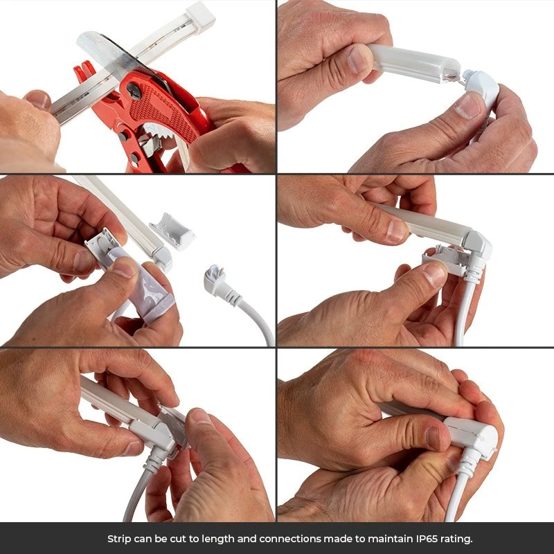 • Designed with a flexible side bend neon flex, these LED strip lights are easy to install and can be shaped to fit any design. Ideal for sign lighting, trade show booths, and more.