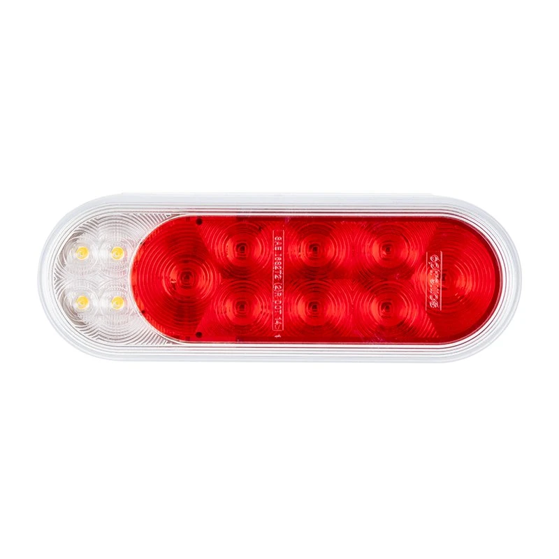 The 6″ oval Optronics Fusion LED Combination Trailer Tail Light features waterproof construction for stop light, turn signal, tail light, and brake light applications. The light is constructed with durable polycarbonate and has an IP67 waterproof rating. The light is equipped with 16 LEDs. Connect using the PL-3 connection. Recessed mount with grommet (sold separately).