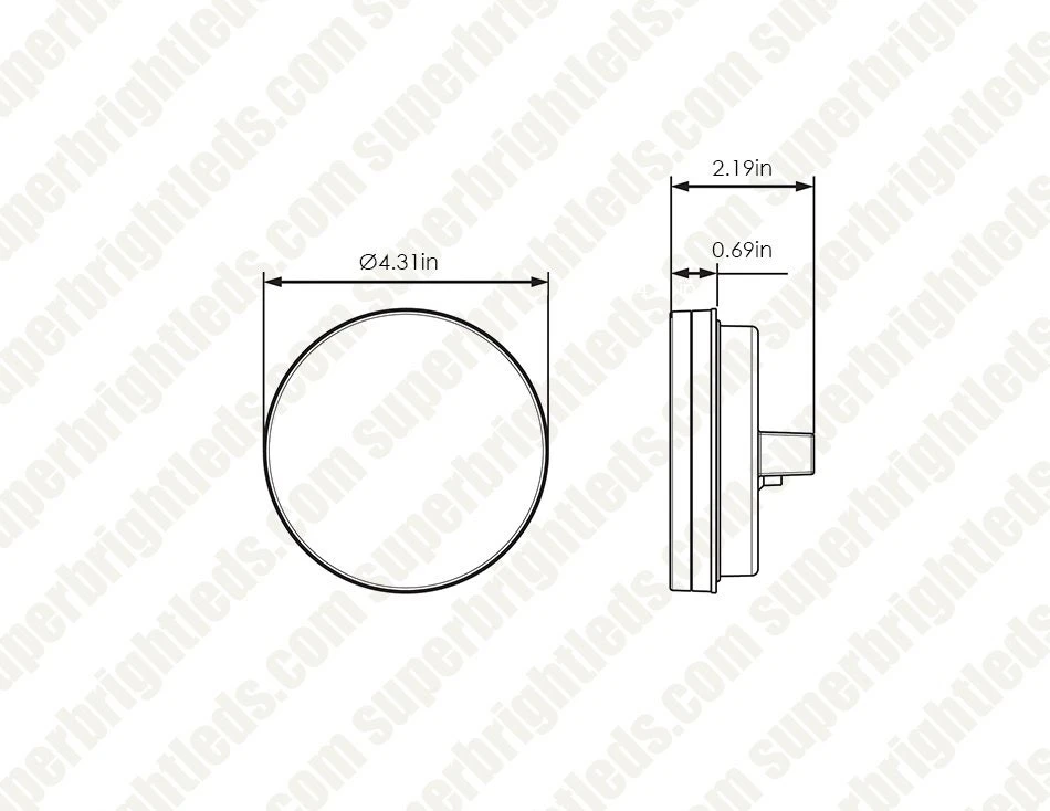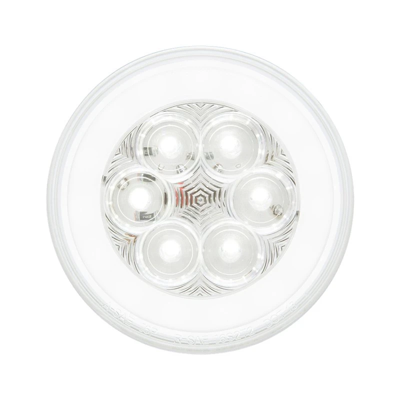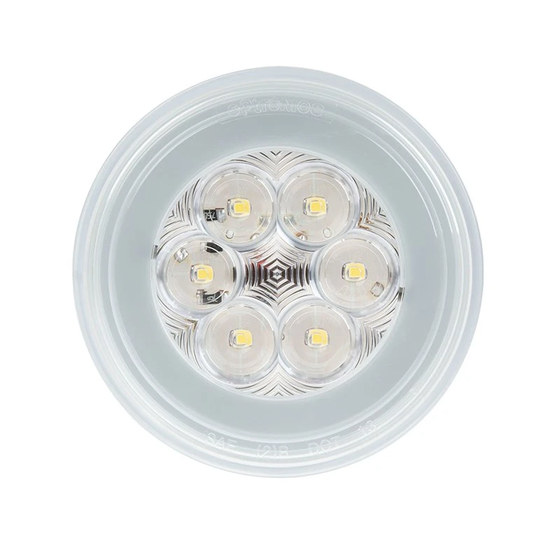The 4″ round LED GloLight by Optronics features waterproof construction for back-up light applications. The light is constructed with durable polycarbonate and has an IP67 waterproof rating. Light is equipped with 21 LEDs. Connect using the PL-3, 2-pin connection. Recessed mount with grommet (sold separately).