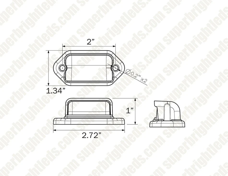 The rectangular Mini LED License Plate Light by Optronics is constructed with an ABS housing available in chrome and black. SMD LEDs withstand shock and vibrations and provide improved heat distrbution. The housing quickly snaps onto the light and directs the light downwards. Low amp power draw – just 0.139 amps at 12.8VDC. Surface mount using the gasket. Hardwire to power using the 2-wire pigtail.