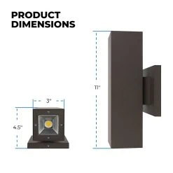 11″ Bronze Square Cylinder LED Wall Sconce – Up/Down Light – 1400 Lumens, 3000K – Outdoor Wall Light