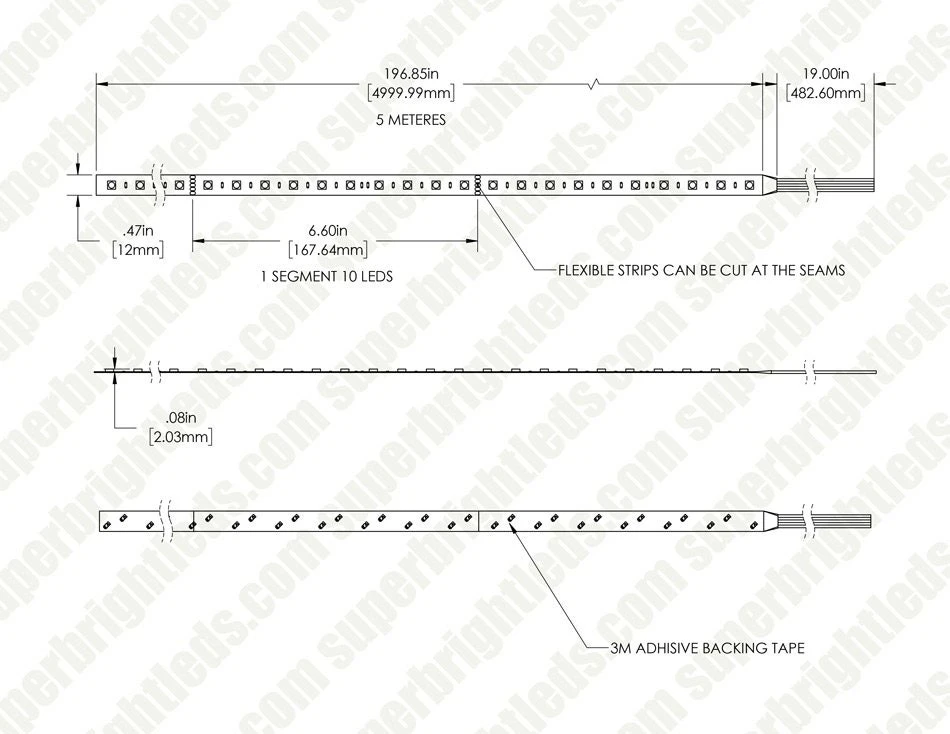 - (5m) RGB+W LED Strip Light – 24V – 204 lm/ft