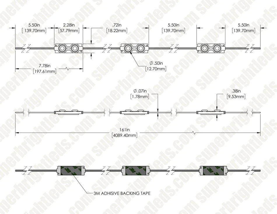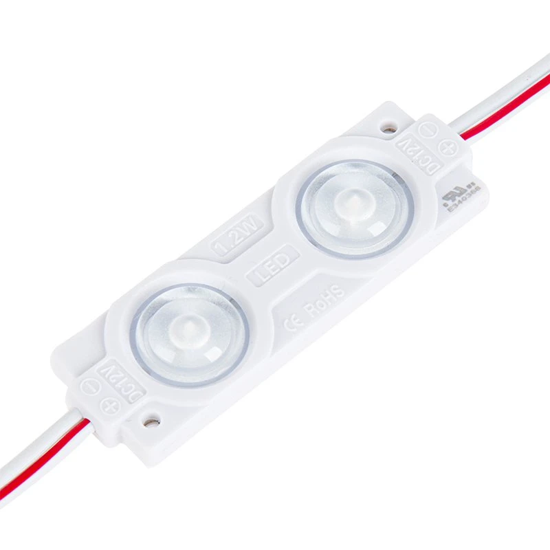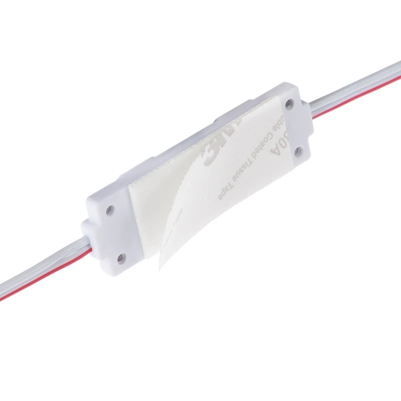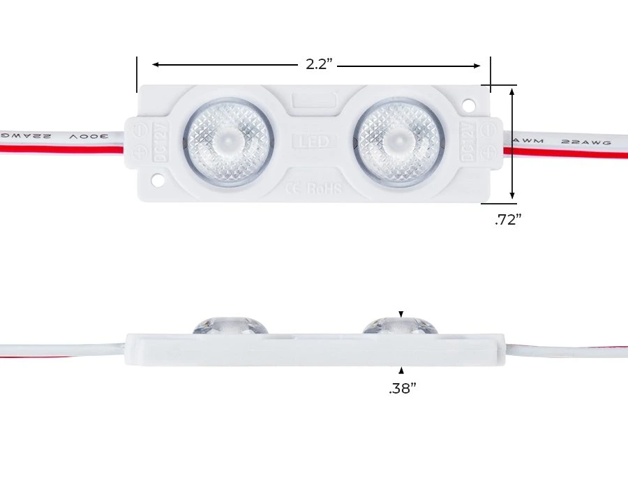 With high quality optic design, the SMCC2 series LED Modules provide a wide beam of light ideal for sign backlighting, channel letters, stage construction, and more. Each module contains 2 LEDS, and a lens to ensure a smooth, broad illumination free of hotspots. Screw holes allow for more permanent mounting, while 3M™ adhesive backing simplifies set up and take down for trade shows displays. A flexible solution for sign and display builders, electrical contractors, or OEMs, these modules have sealed weatherproof housing to be used in an array of lighting design applications.
