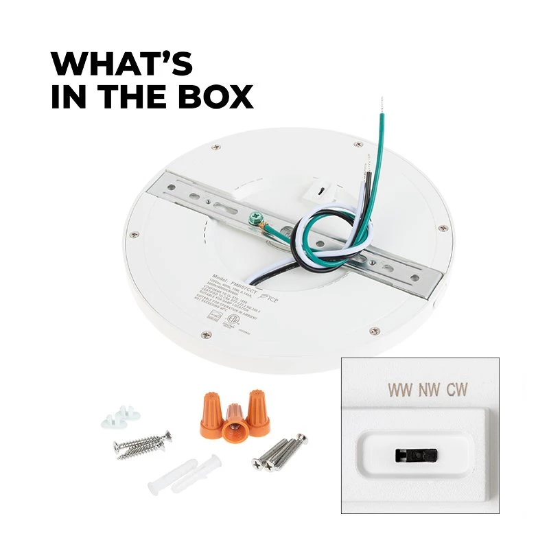 TCP’s 7″ LED Slim Flush Mount Fixtures are perfect for new construction or retrofit projects. They are color selectable and come with a matte black magnetic trim ring. The field-selectable CCT allows you to select the color temperature that best suits your needs. The frosted lens diffuses the 120° beam angle, producing a uniform light distribution. Install directly to a junction box or within a 5″ or 6″ recessed can. IC Rated for contact with insulation.