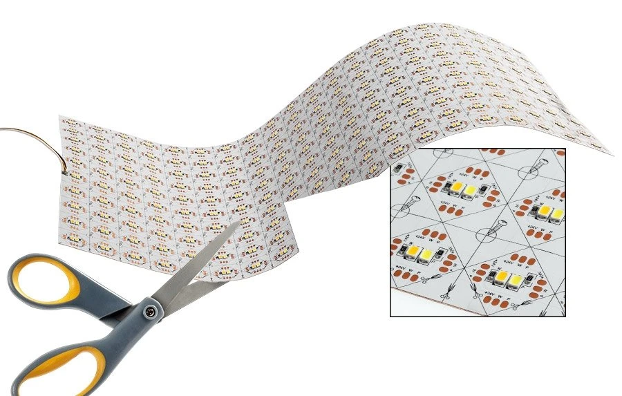 Please refer to the specification sheet for cutting recommendations. Using only the pre-marked lines when cutting the sheet is essential to maintaining electrical contact.