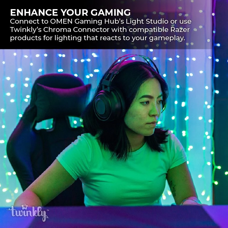 • Control your lighting experience with the Twinkly app, available for iOS and Android. Choose from a variety of pre-set effects or create your own unique designs.